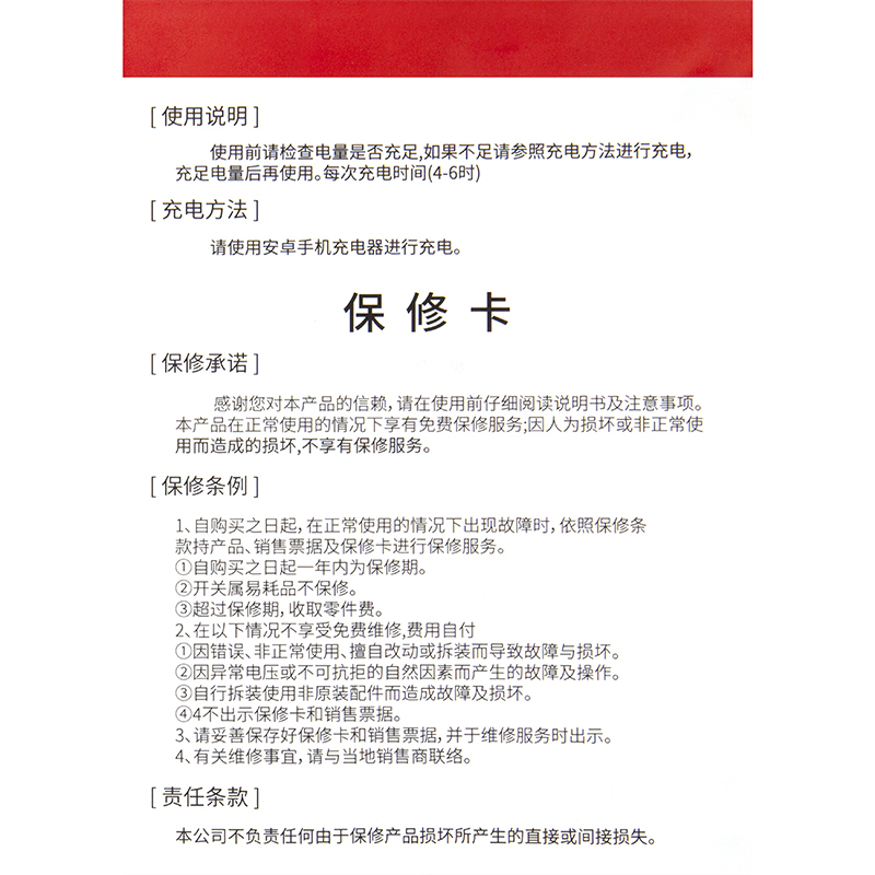 • 时间:满电工作约2-4小时/约8-12小时充电(以实际情况为准)