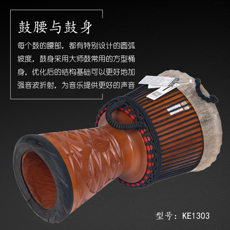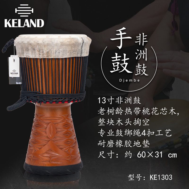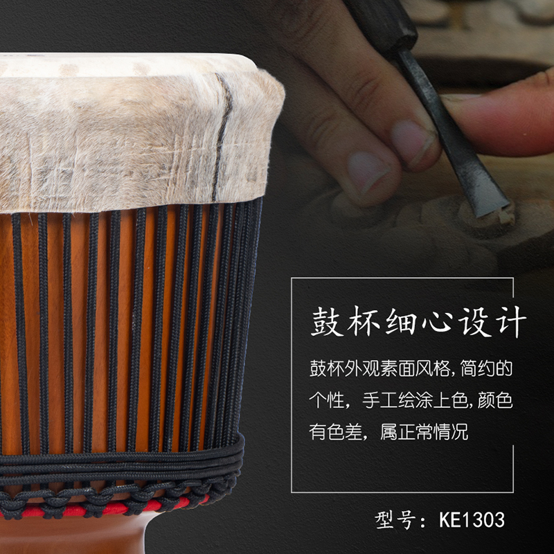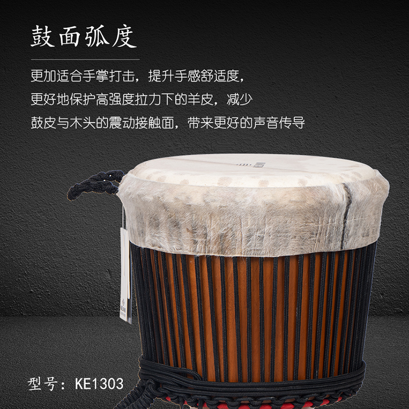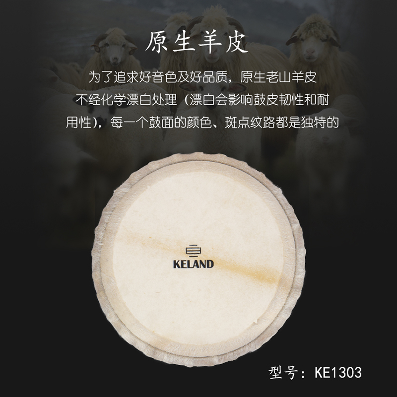 产品名:KELAND凯朗 KE1303 毛皮13寸手工大师鼓(黑绳)