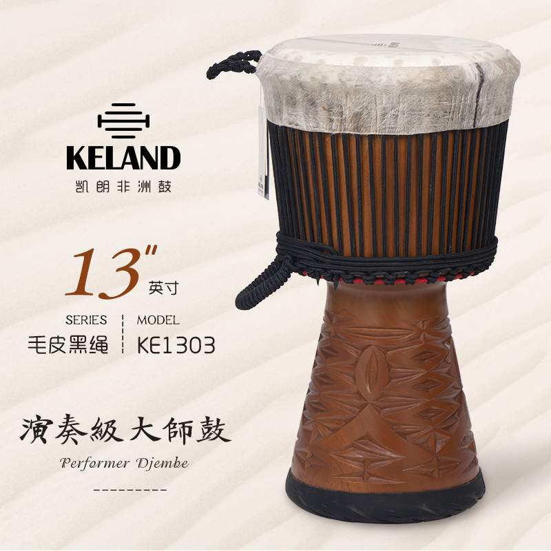 • KELAND凯朗 KE1303 毛皮13寸手工大师鼓(黑绳)