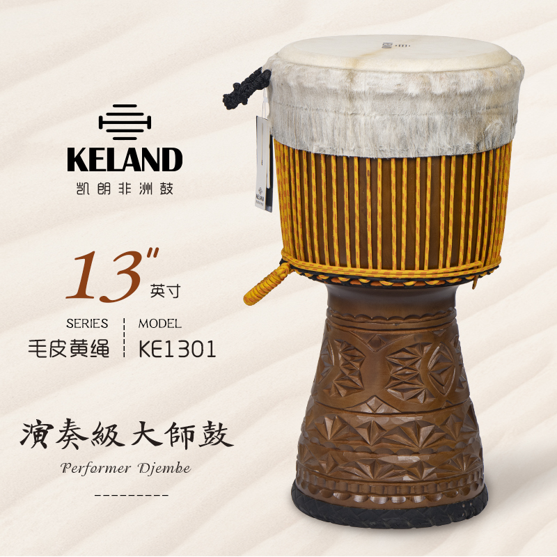 • KELAND凯朗 KE1301 毛皮13寸手工大师鼓(黄绳)