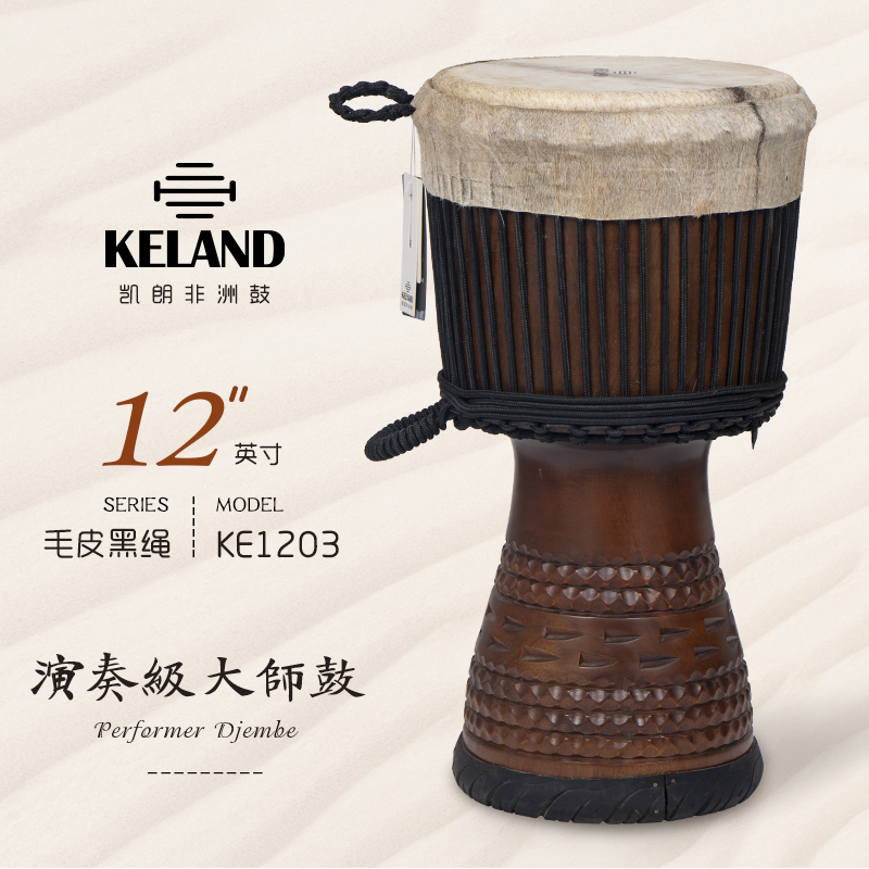 • KELAND凯朗 KE1203 毛皮12寸手工大师鼓(黑绳)(下架停售)
